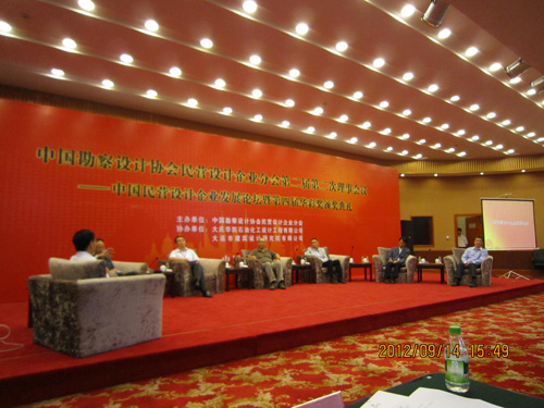 中國(guó)勘察設(shè)計(jì)協(xié)會(huì)民營(yíng)設(shè)計(jì)企業(yè)分會(huì)第二屆第二次理事會(huì)議于2012年9月14日在大連舉行。本次會(huì)議的主辦單位是中國(guó)勘察設(shè)計(jì)協(xié)會(huì)民營(yíng)設(shè)計(jì)企業(yè)分會(huì),協(xié)辦單位是大慶華凱石油化工設(shè)計(jì)工程有限公司和大連市建筑設(shè)計(jì)研究院有限公司。